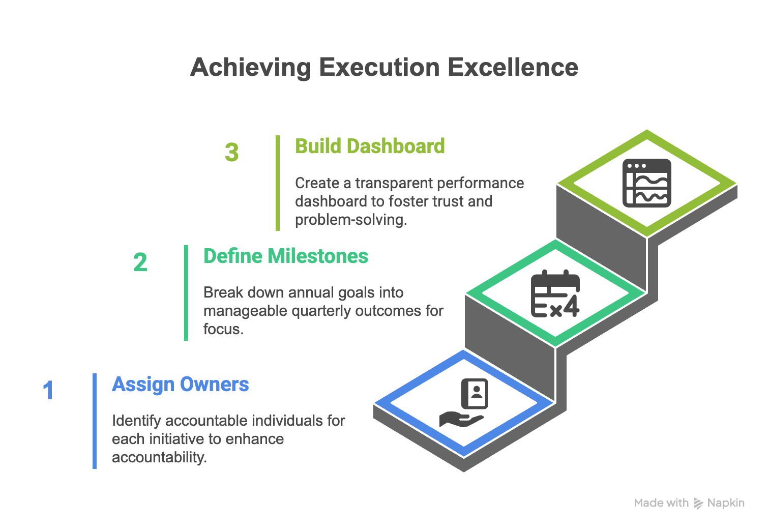 - Defining quarterly milestones and tracking them. Big annual goals are inspiring, but they’re also overwhelming. Breaking them into quarterly outcomes makes them manageable and keeps everyone focused on near-term wins.
